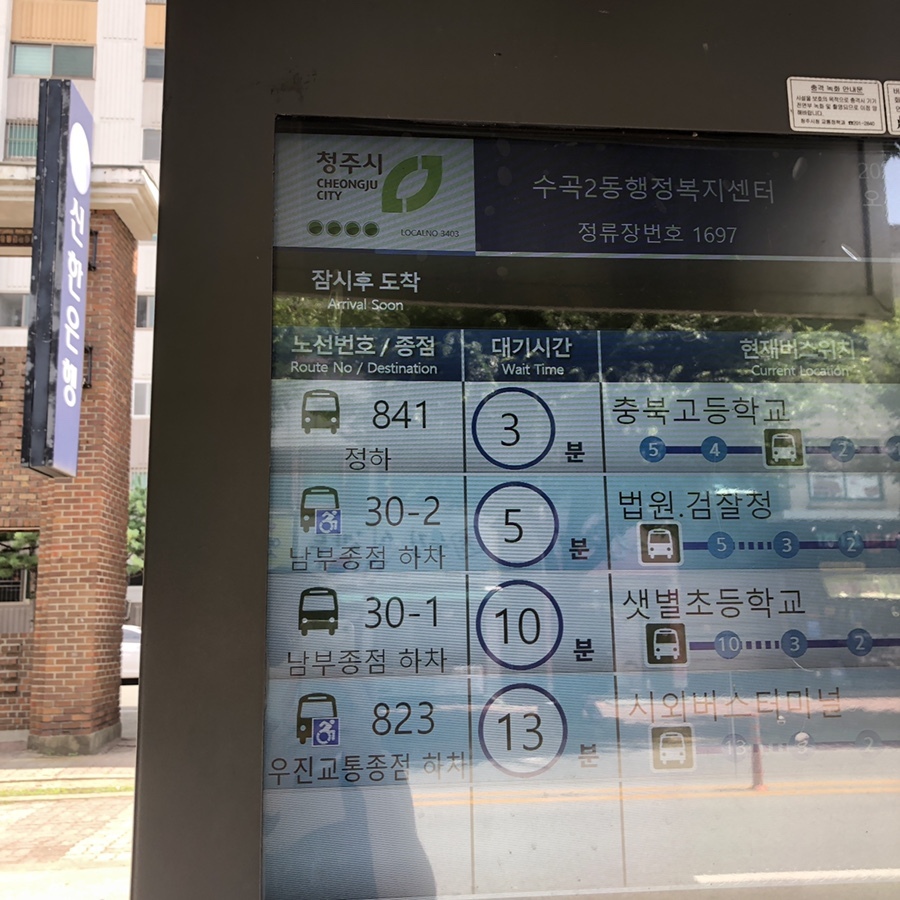 청주 버스는 한 번 놓치면 곤란해요. 배차간격이 기본은 30분이더라고요.